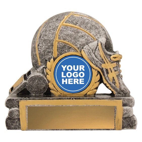 A low profile netball form features a raised ball and shoe detail with defined edging for netball trophies. The compact structure and insert space support participation awards.