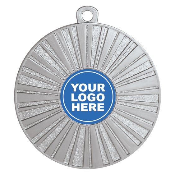 Radiating linear panels extend outward from the central insert frame, creating a bold circular structure for custom medals. The alternating textured and smooth segments keep the composition balanced while directing focus toward the insert centre.