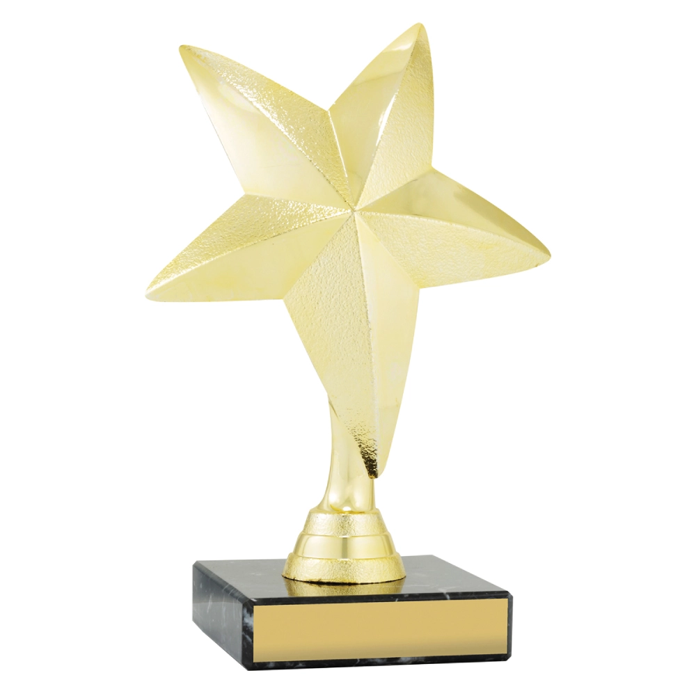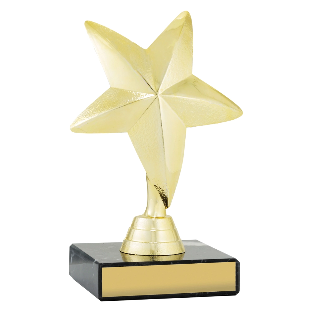 Mini Metal Star trophy features a polished gold metal star mounted on a solid black marble base, creating a clean and modern design suited to achievement trophies. A compact award ideal for schools, clubs and corporate presentations.