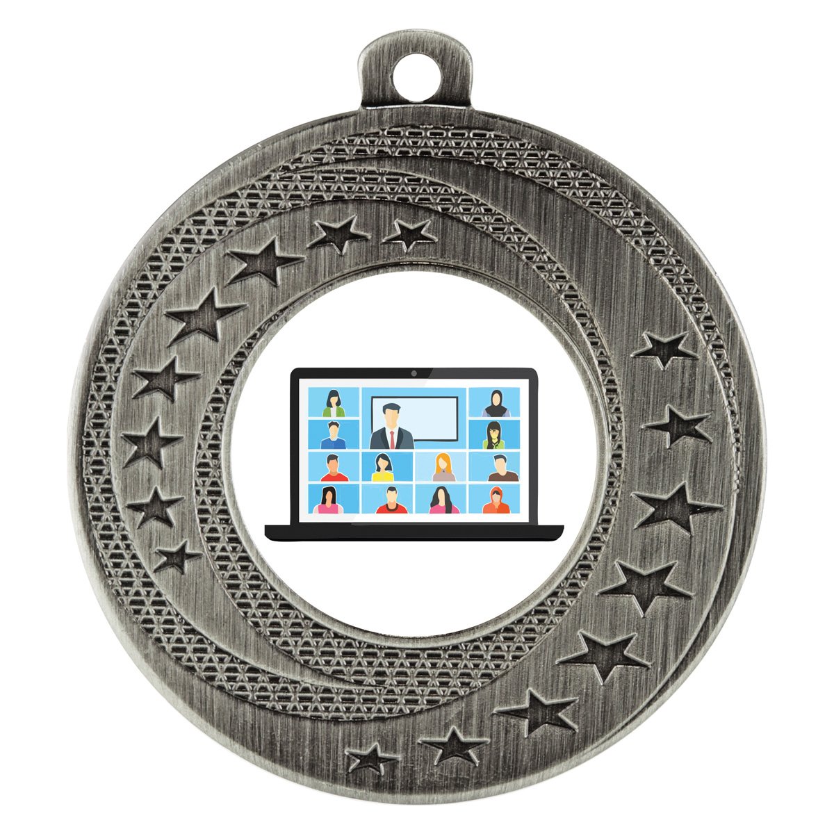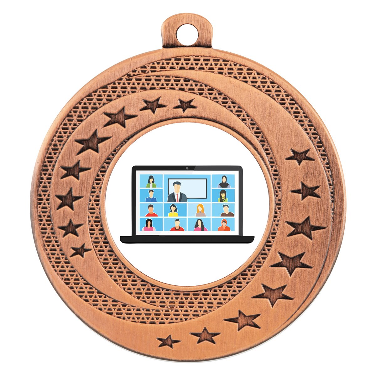 A circular medal frame with layered textures and star detailing surrounds a central insert space designed for themed graphics for academic medals. The patterned ring and raised stars guide the eye toward the insert area while the outer band contains the composition.